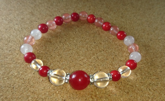 【Kobe-Design】パワーストーンファッションブレスレット(レッドコーラル チェリークォーツ クリスタル ローズクォーツ)(stone-braclet-04_04_112203)