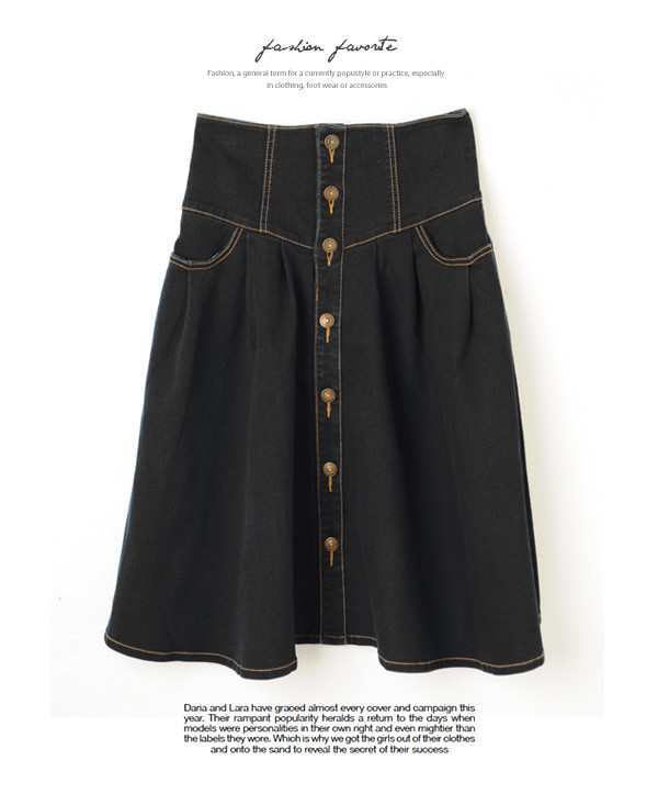 かなり伸縮性の高いデニム生地を使用したbr> 膝丈のフレアスカート。