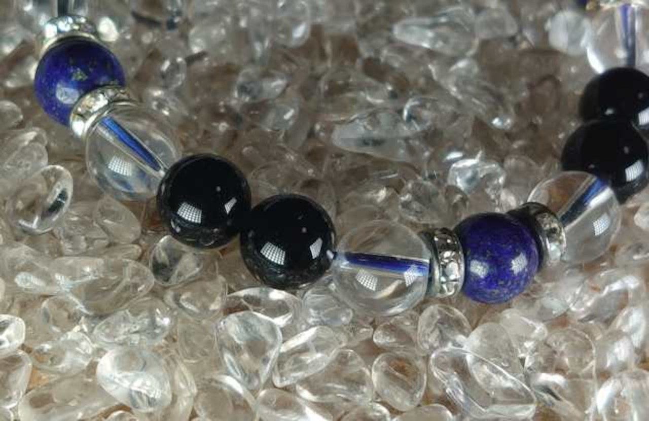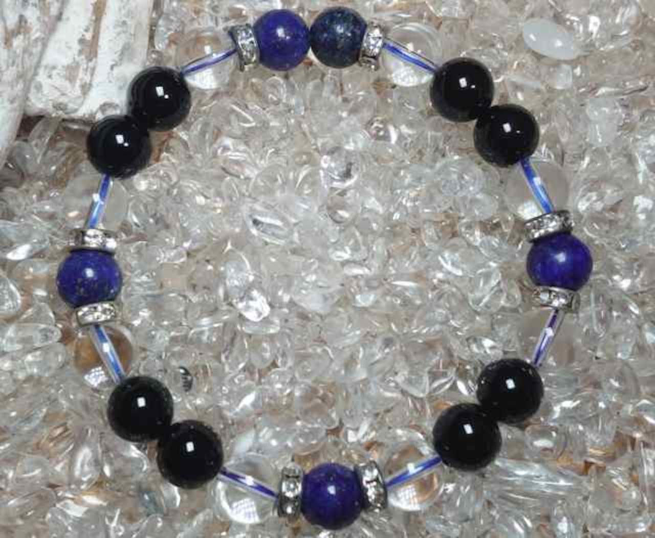 ラピスラズリ、オニキス、クリスタルを使った当店限定デザインのブレスレットです。