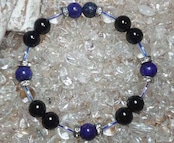 素材:ラピスラズリ5個・オニキス8個・クリスタル8個・平型ロンデル8個・オペロンゴム