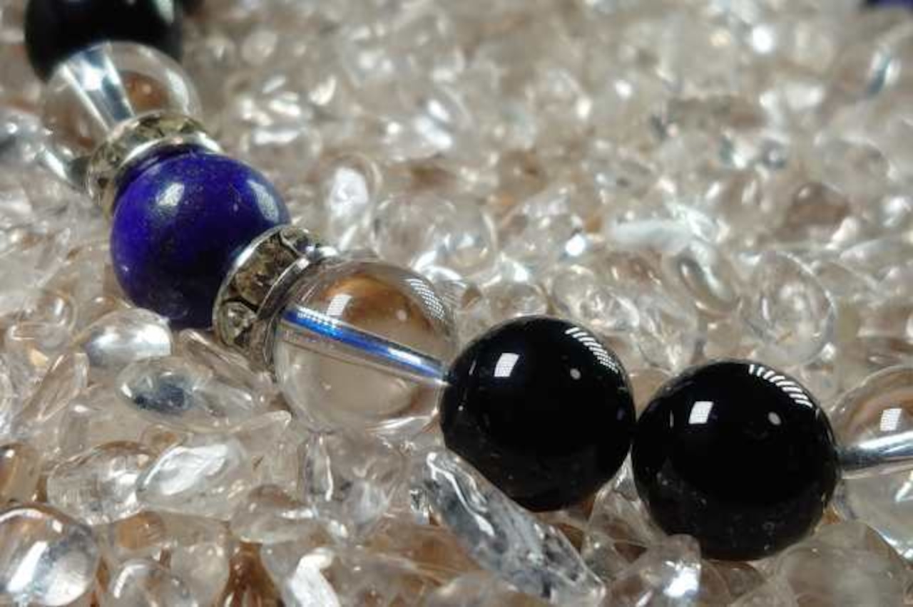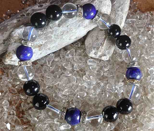 ラピスラズリ、オニキス、クリスタルを使った当店限定デザインのブレスレットです。